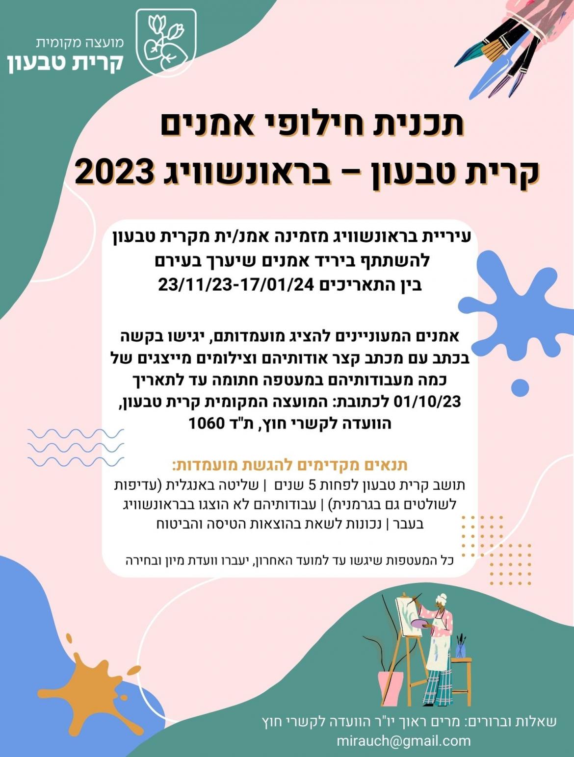 עיריית בראונשוויג מזמינה אמן/נית מקרית טבעון להשתתף ביריד אמנים שיערך בעירם בין התאריכים 23/11/23-17/01/24
