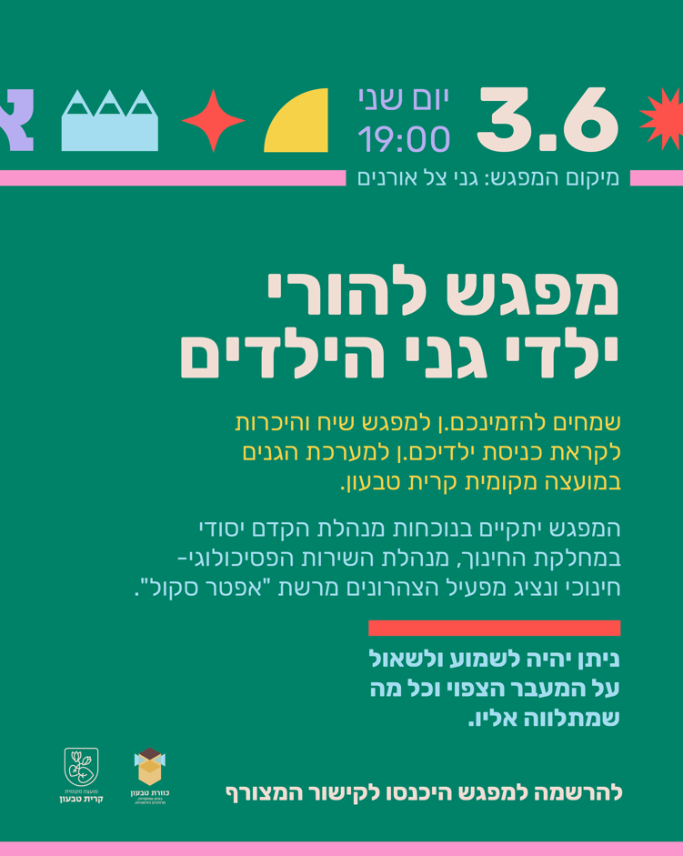 שמחים להזמינכם.ן למפגש שיח והיכרות לקראת כניסת ילדיכם.ן למערכת הגנים במועצה מקומית קרית טבעון.