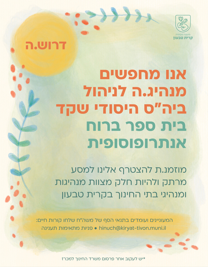 מוזמנ.ת להצטרף אלינו למסע מרתק ולהיות חלק מצוות מנהיגי ומנהיגות בתי החינוך בקרית טבעון