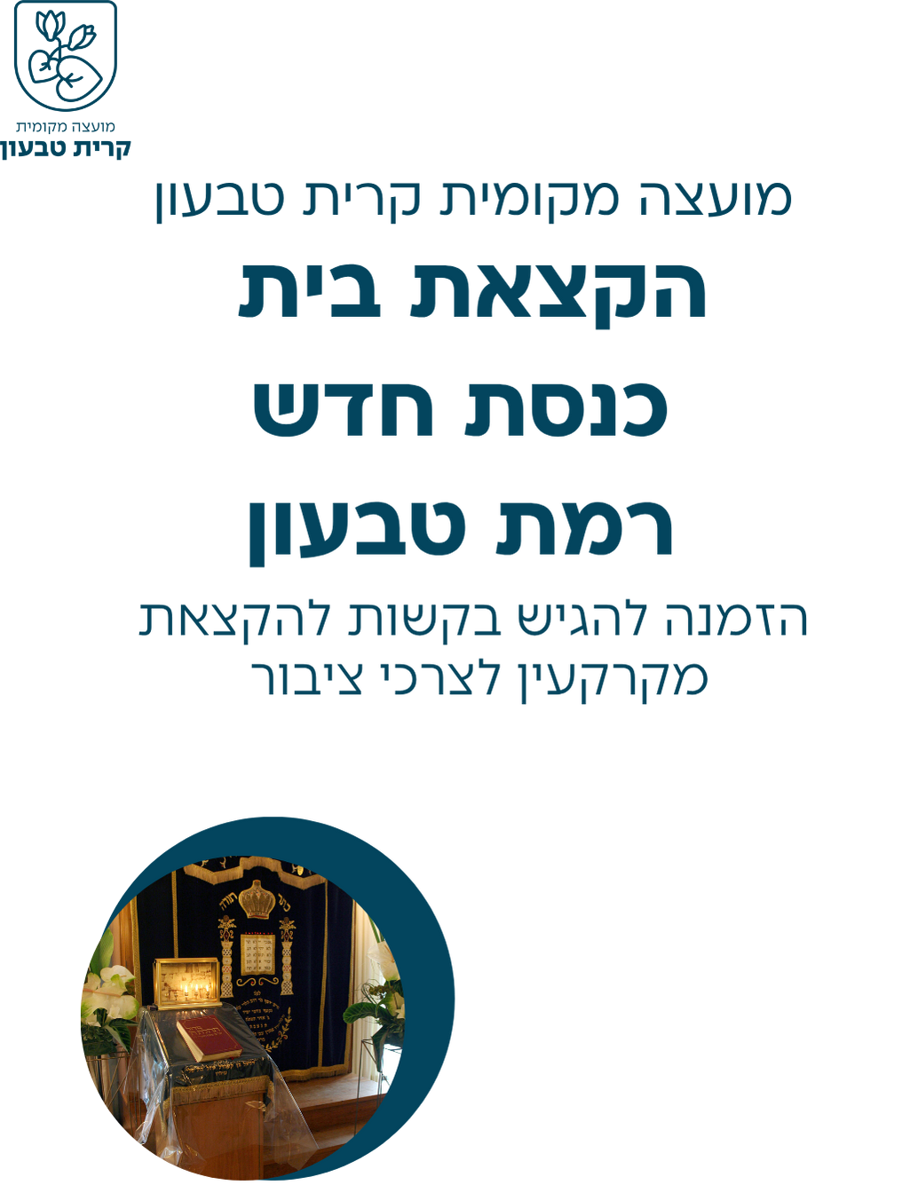 נמסרת בזאת הודעה לציבור על כוונת המועצה המקומית קרית טבעון לשקול הקצאת חלק ממבנה בתחום המועצה המקומית קרית טבעון למטרת בית כנסת, בתמורה סמלית.