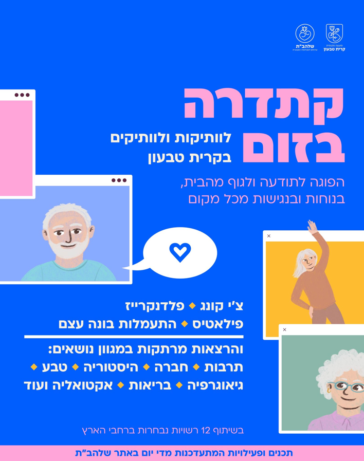 > בשיתוף: שלהב״ת | המדור לאזרח הוותיק במחלקה לשירותים חברתיים, מועצה מקומית קרית טבעון | הפעילות מתקיימת בשיתוף 12 רשויות ברחבי הארץ