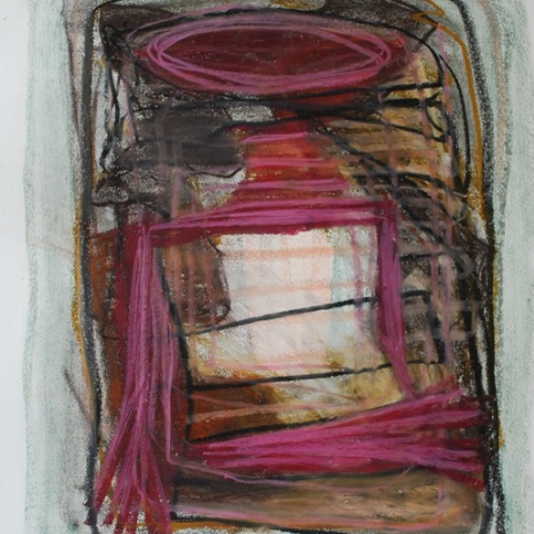 ציור מופשט. עובדת באקריליק, בצבעי פנדה וגיר. עבודות על בד ועל נייר. בגדלים שונים. ללא כותרת. פנדה על נייר. 50×70 ב\"מ