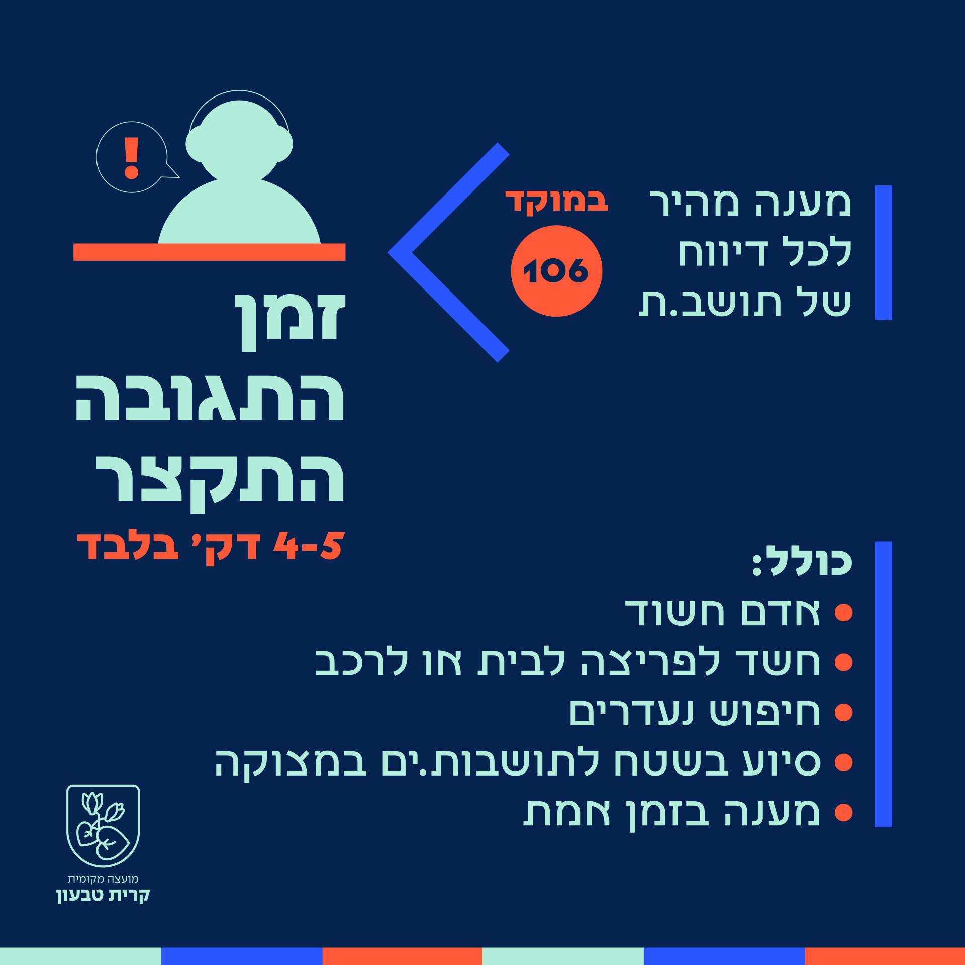 המוקד נותן מענה למגוון דיווחים, לדוגמא: