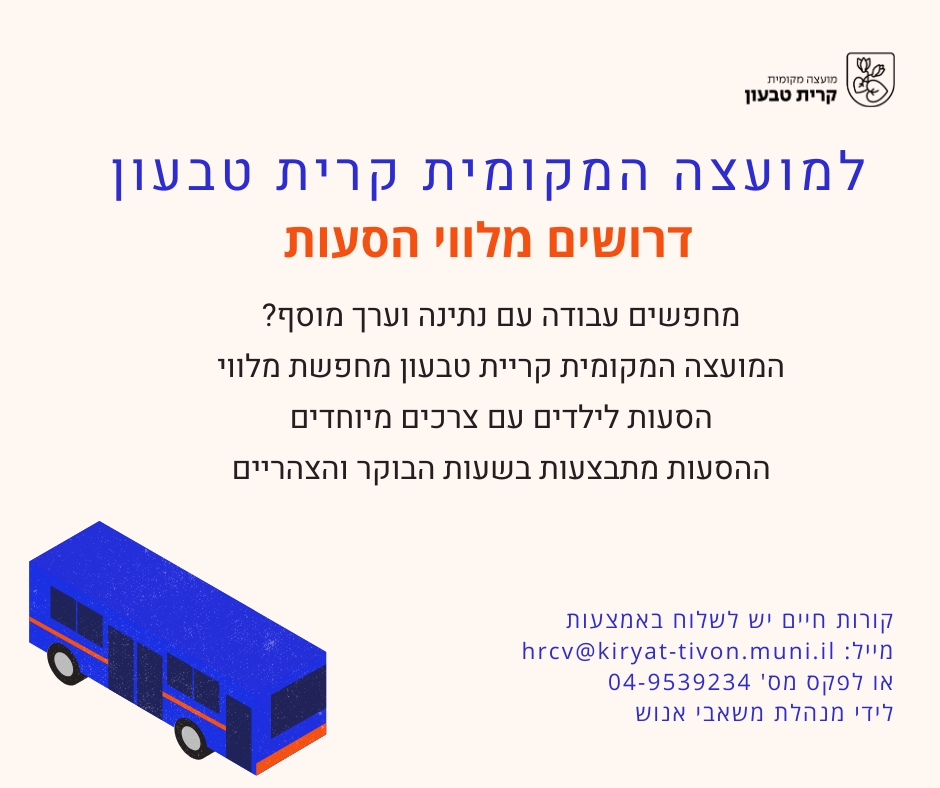 המועצה המקומית קריית טבעון מחפשת מלווי הסעות לילדים עם צרכים מיוחדים.