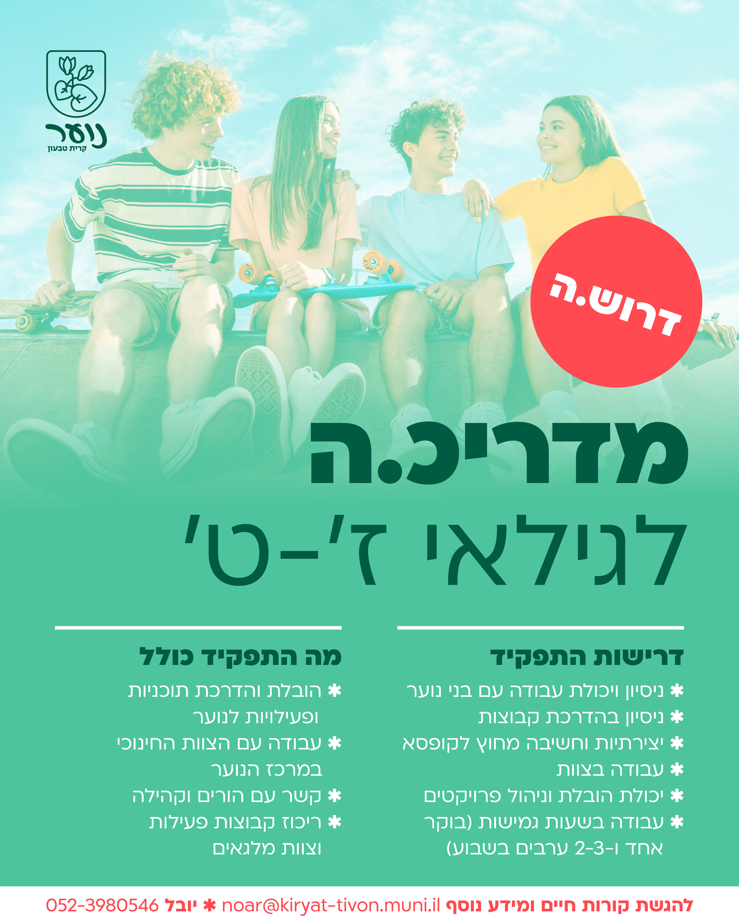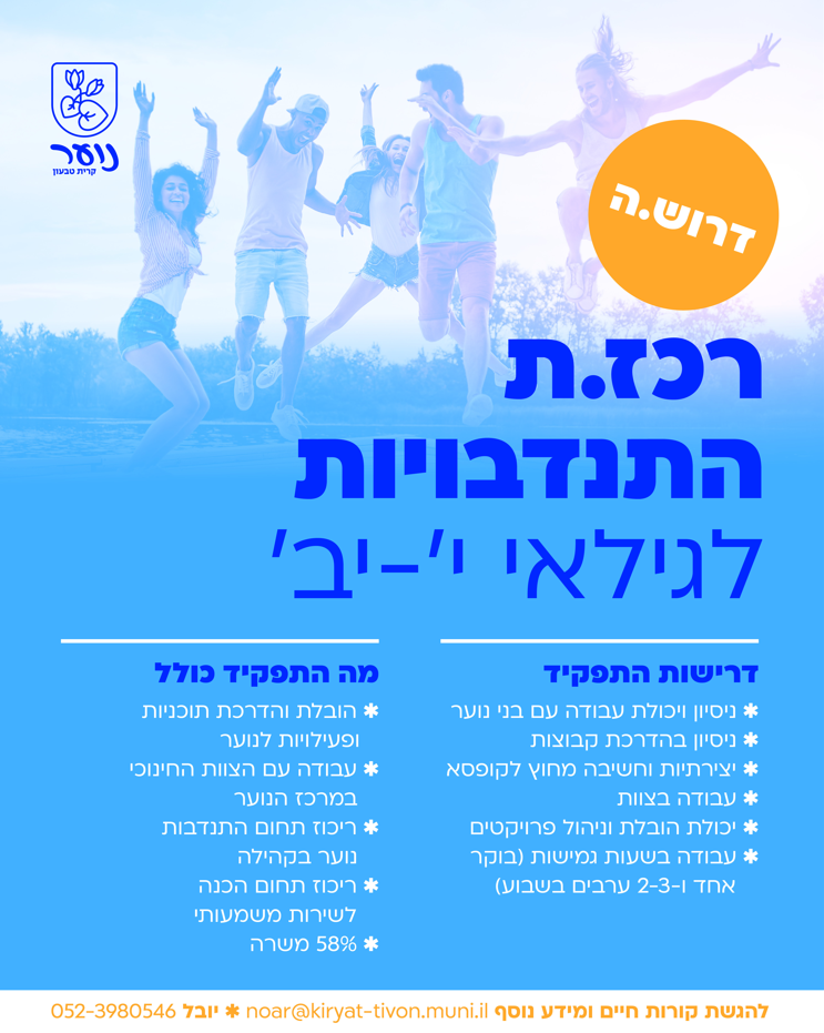מדריך נוער רשותי לגילאי י'-יב' ורכז התנדבות נוער רשותי בחינוך