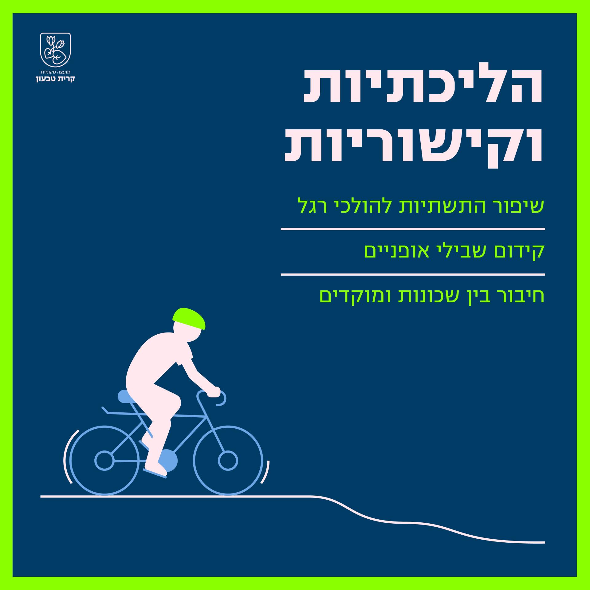 המהלך לשיפור זרימת התנועה בקריה נשען גם על חיזוק הליכתיות וקישוריות בין חלקי היישוב. שיפור תנאי ההליכה מאפשר מעבר נוח ובטוח יותר בין שכונות, מוסדות חינוך, מוקדי מסחר ותחבורה ציבורית, ומעודד בחירה בהליכה רגלית כחלופה לנסיעות קצרות ברכב פרטי.