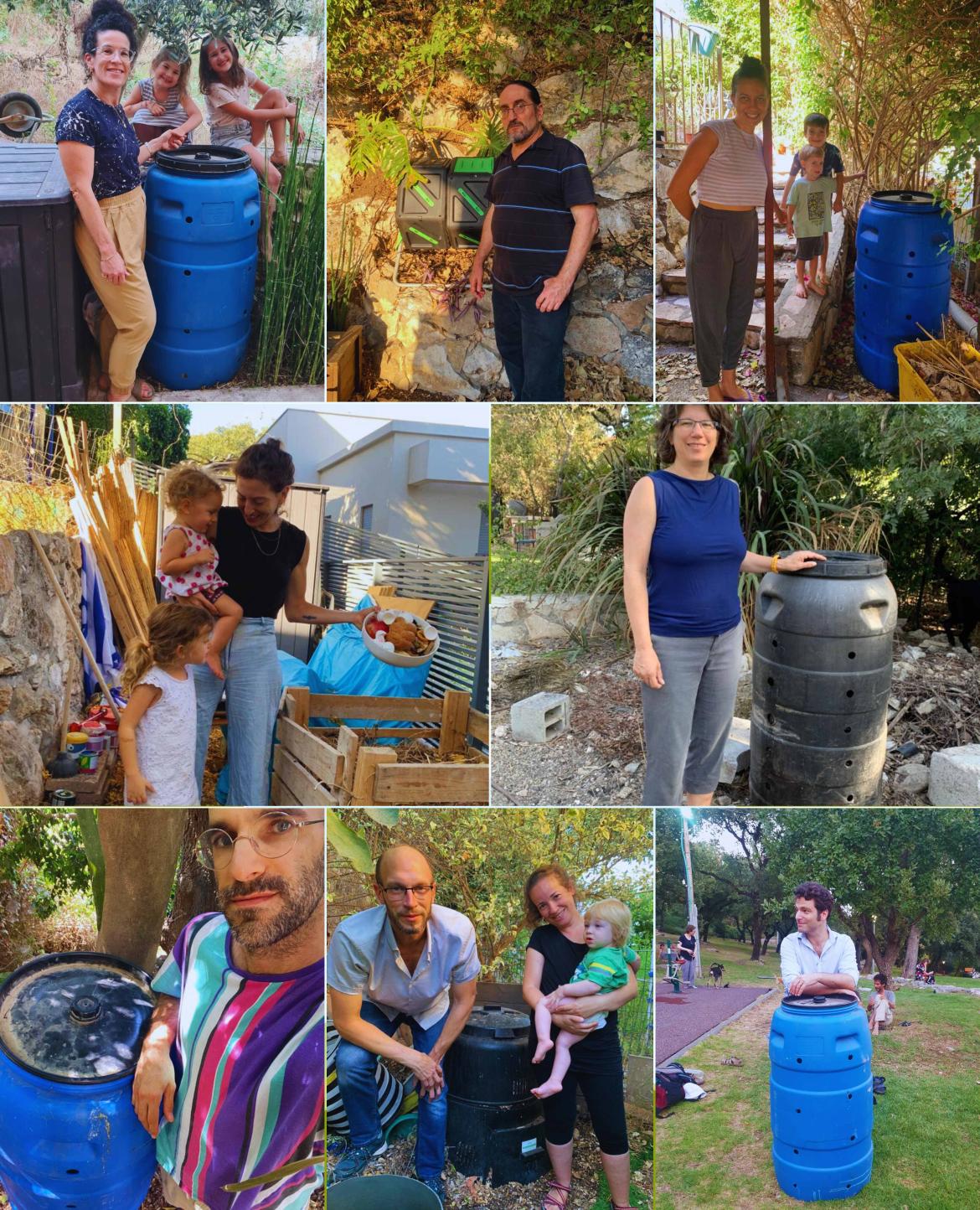 תושבים/ות ממחזרים/ות הצטלמו לצד הקומפוסט הביתי לטובת קמפיין העלאת מודעות להפרדת אשפה ומחזור הפסולת הביתית | קרדיט: דוברות המועצה