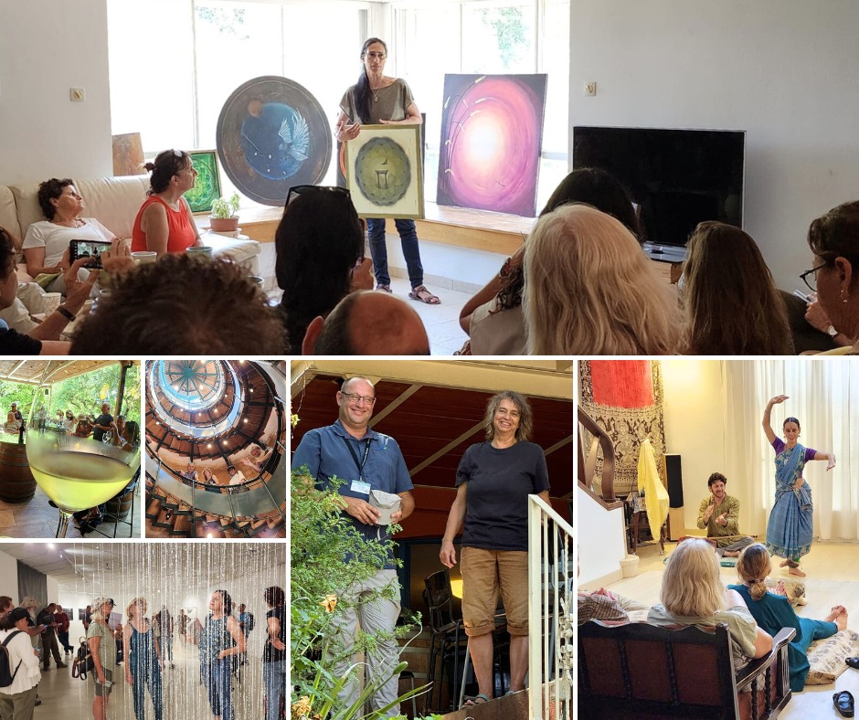 בתמונות: ביקור ביקב יקב סימון של היינן זאבי סימון | ביקור במגדל המים | ביקור בגלריה לאומנות ישראלית במרכז ההנצחה בתערוכה ׳גוף הרגש׳, אוצרת: מיכל שכנאי יעקבי | ביקור בסטודיו של רחלי אלון המארחת את רגינה גלית נוה | ביקור בבית קולטון אצל דינור ועמוס אהרונסון